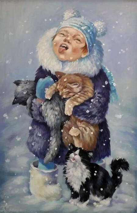 А с другой стороны, автор уделяет не меньшее внимание миловидным детишкам и зверушкам, которые, радуются первому снегу и происходящему вокруг.